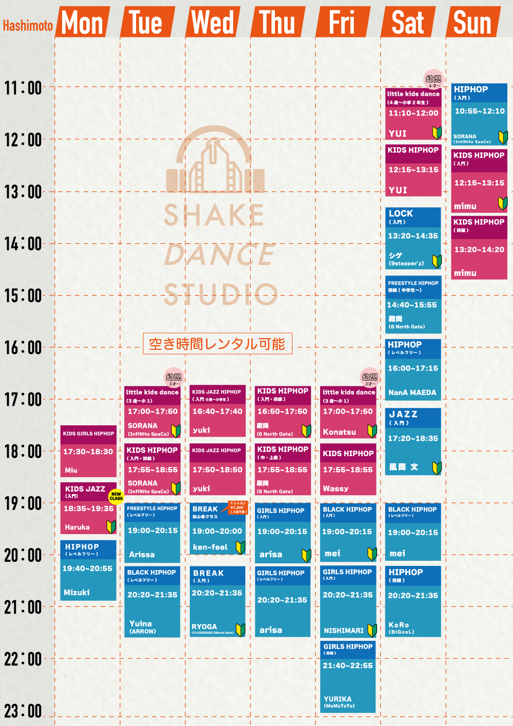 timetable – SHAKE ダンススタジオ 八王子/橋本のダンススクール